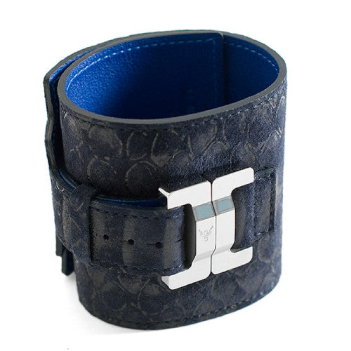 Your bracelet is crafted from high-quality leather. To maintain its appearance, avoid using abrasive products and refrain from brushing it. For cleaning, gently wipe it with a soft cloth lightly dampened with cold water. To preserve the sheen of the steel clasp, store it in the blue suede pouch provided.